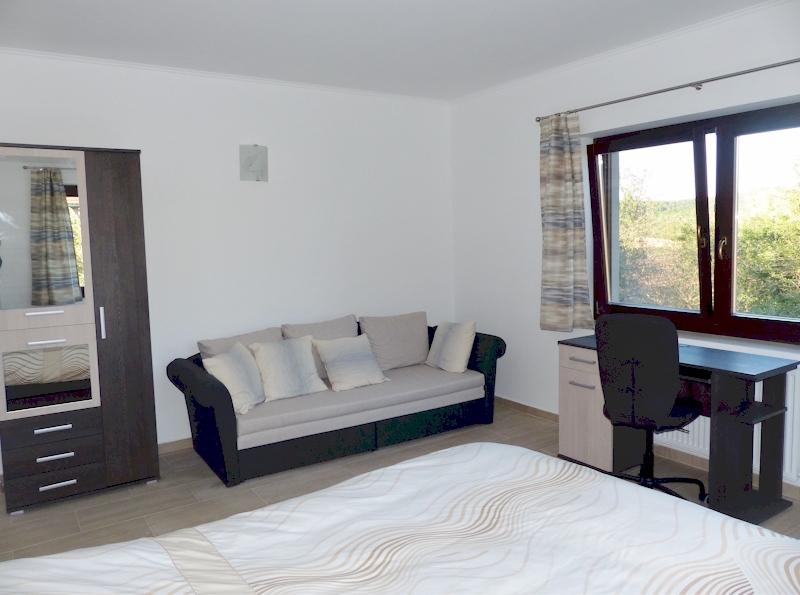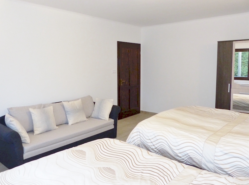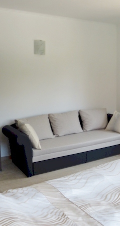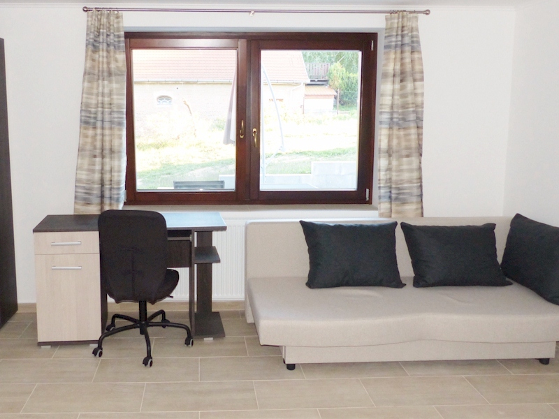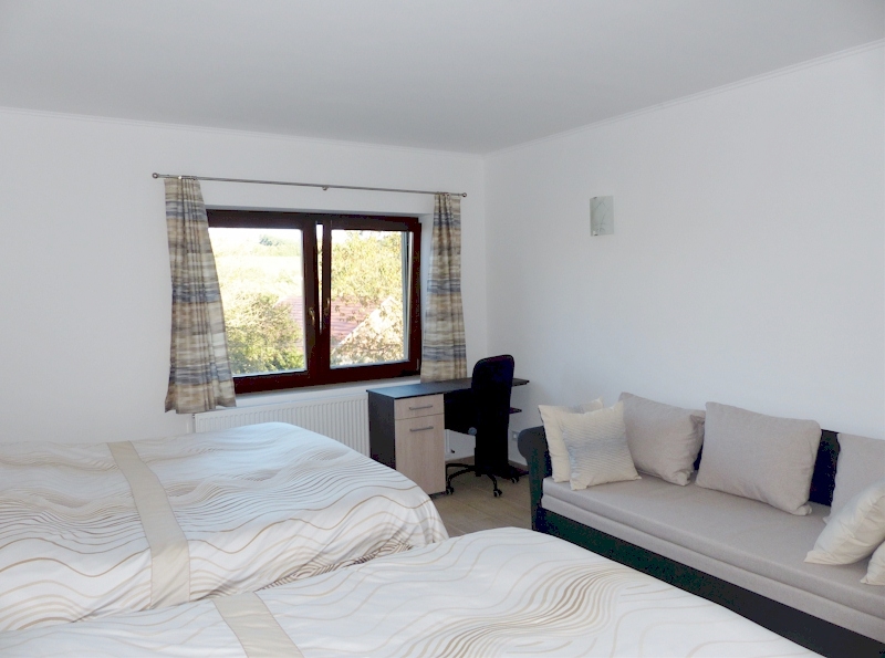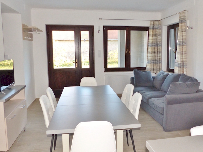 The guests have the entire garden at their disposal, which consists largely of grassland with some fruit trees.
