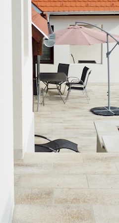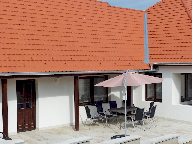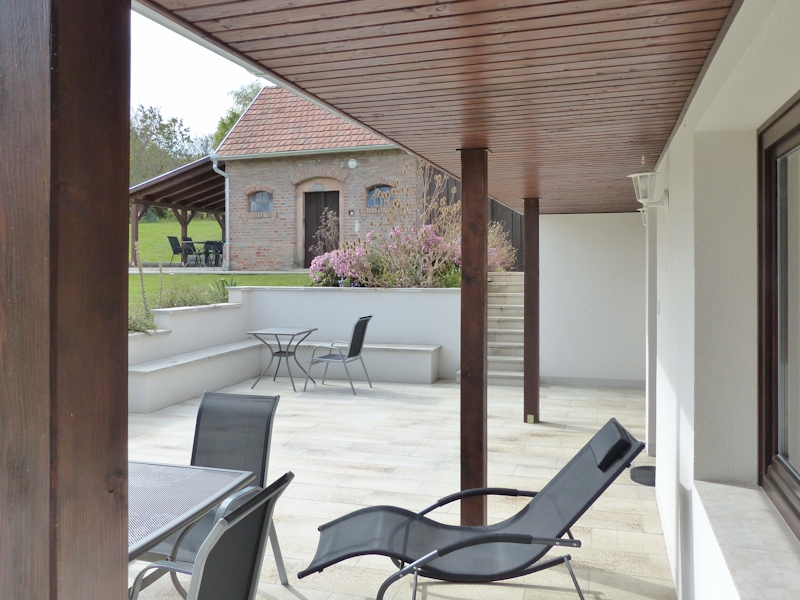 In order to provide ample shade the terrace has a stone rear wall (south) and one stone side wall (west).