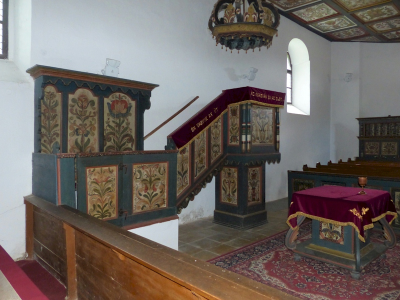 The church, dating from 1785, has a beautiful painted cassette ceiling.
