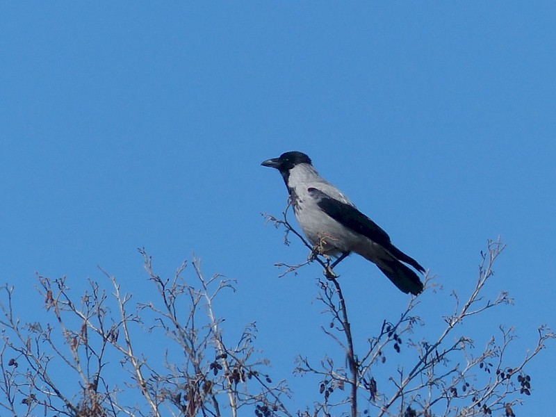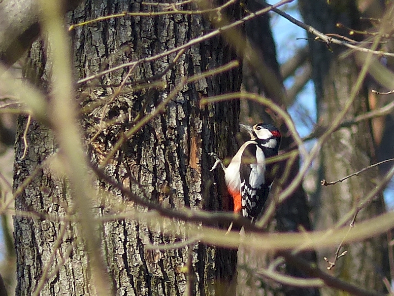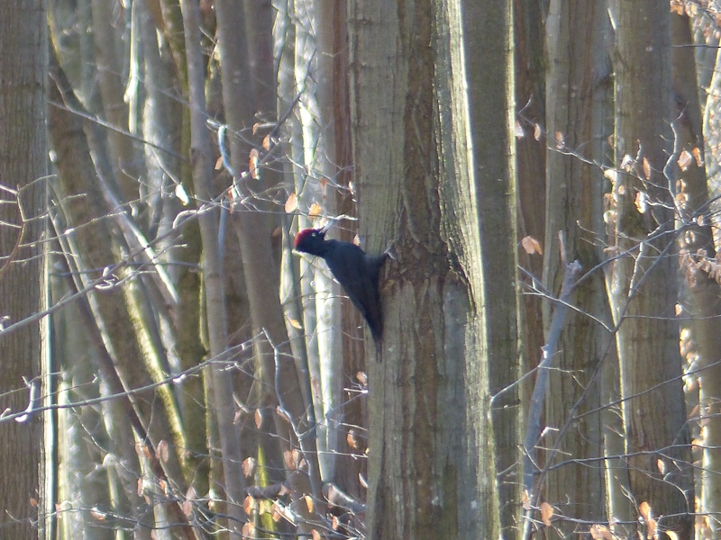 | El pájaro carpintero más grande de Europa. Bastante común y de vez en cuando lo podemos ver en el pueblo también. Gracias a su llamada característica por lo general es más fácil oírlo que verlo. Audió 1 = llamada perchada, audió 2 = llamada en vuelo.